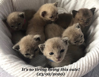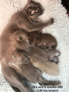 Skye gave birth to six beautiful burmese kittens on Tuesday 4th February 2020. The father of the kittens is Imperial Grand Champion Vintarn Dynasty by Design or Hugo to his friends. He is a very handsome chocolate boy.
